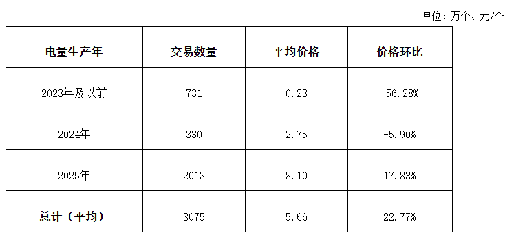 2025年8月,全国单独交易绿证3075万个,交易平均价格为5.66元/个,环比增长22.77%。