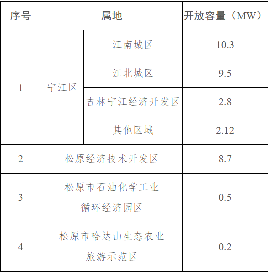 按照《分布式光伏发电开发建设管理办法》有关要求,现将松原市本级分布式光伏发电项目2025年四季度接入配电网可开放容量公布如下: