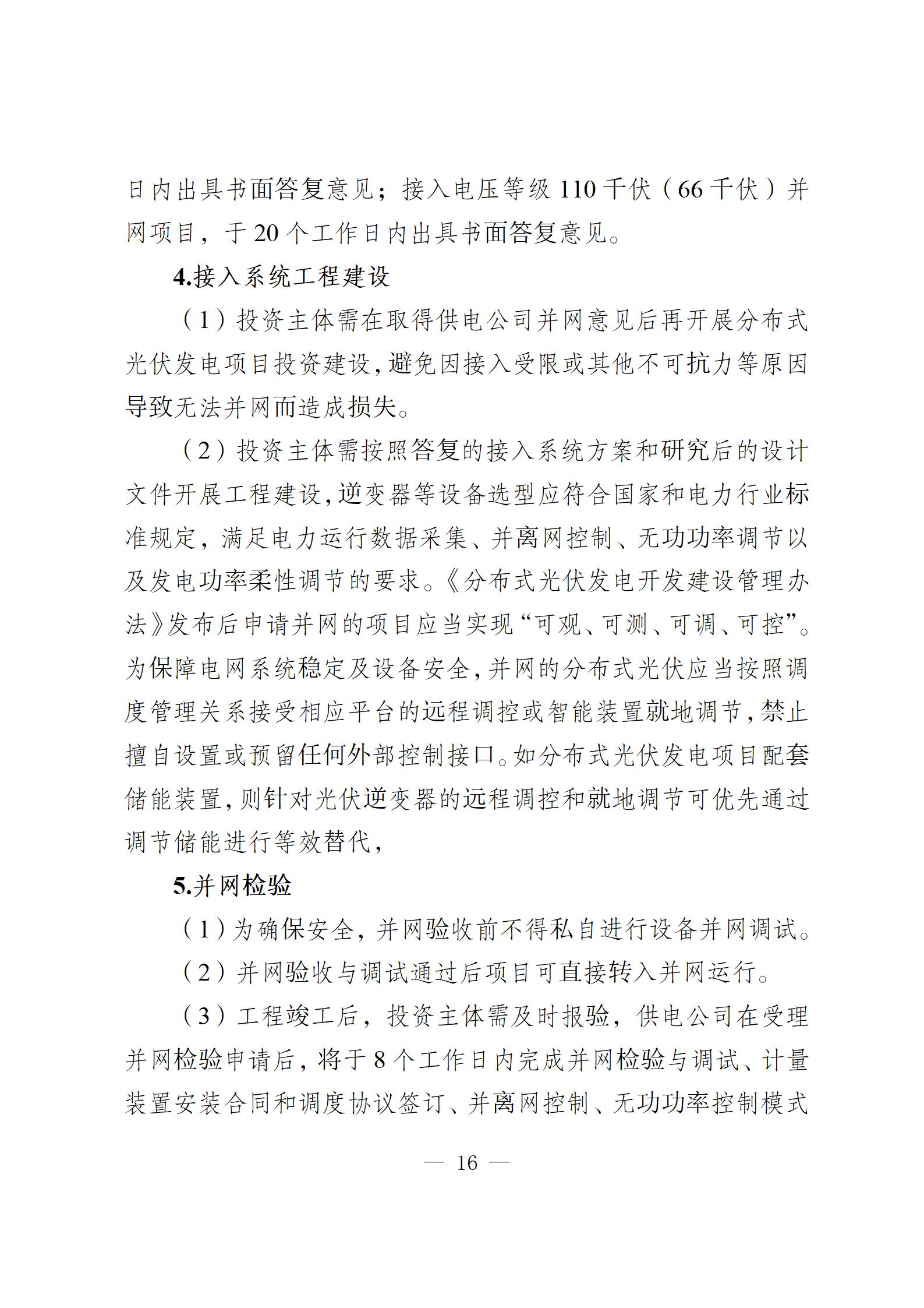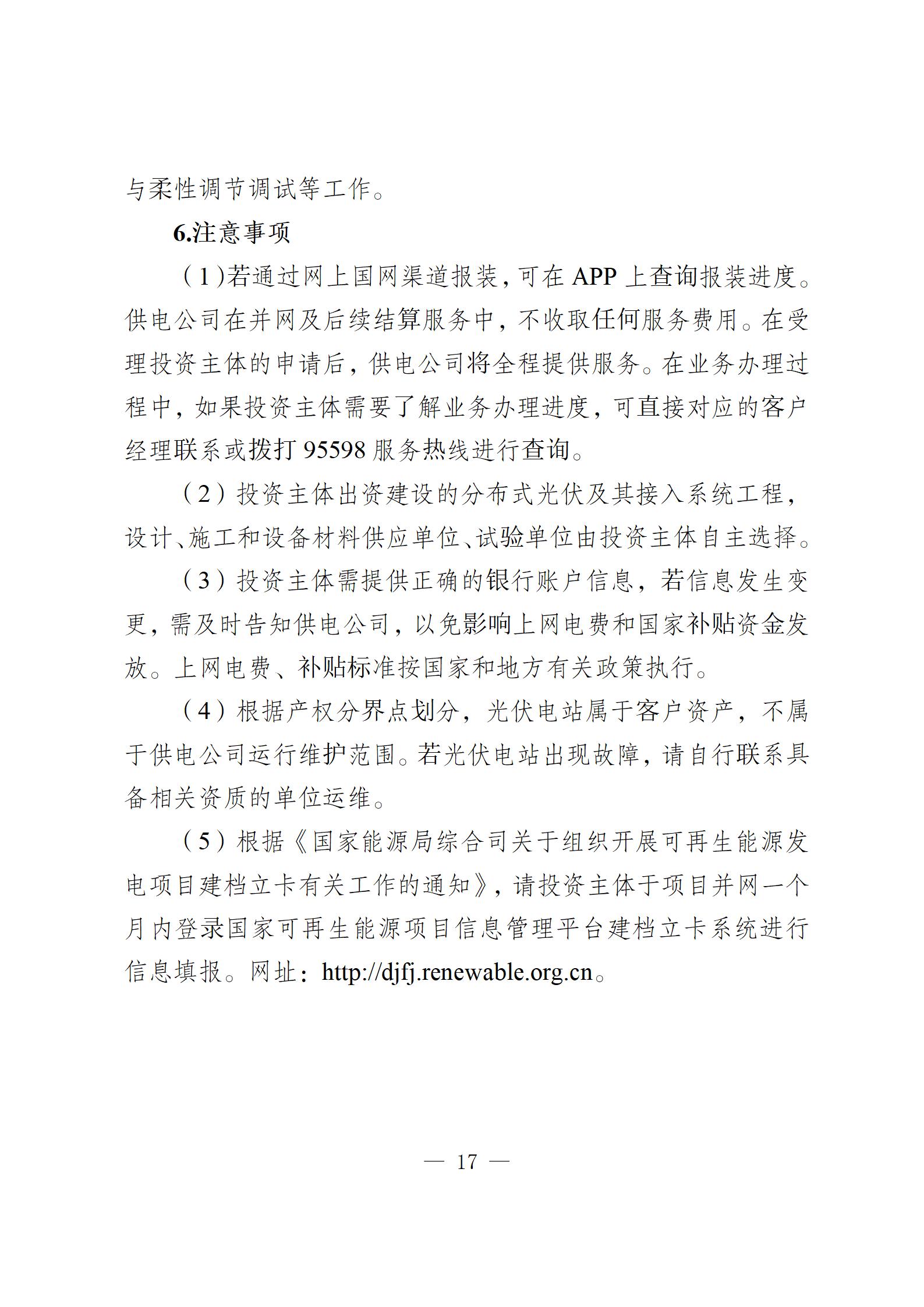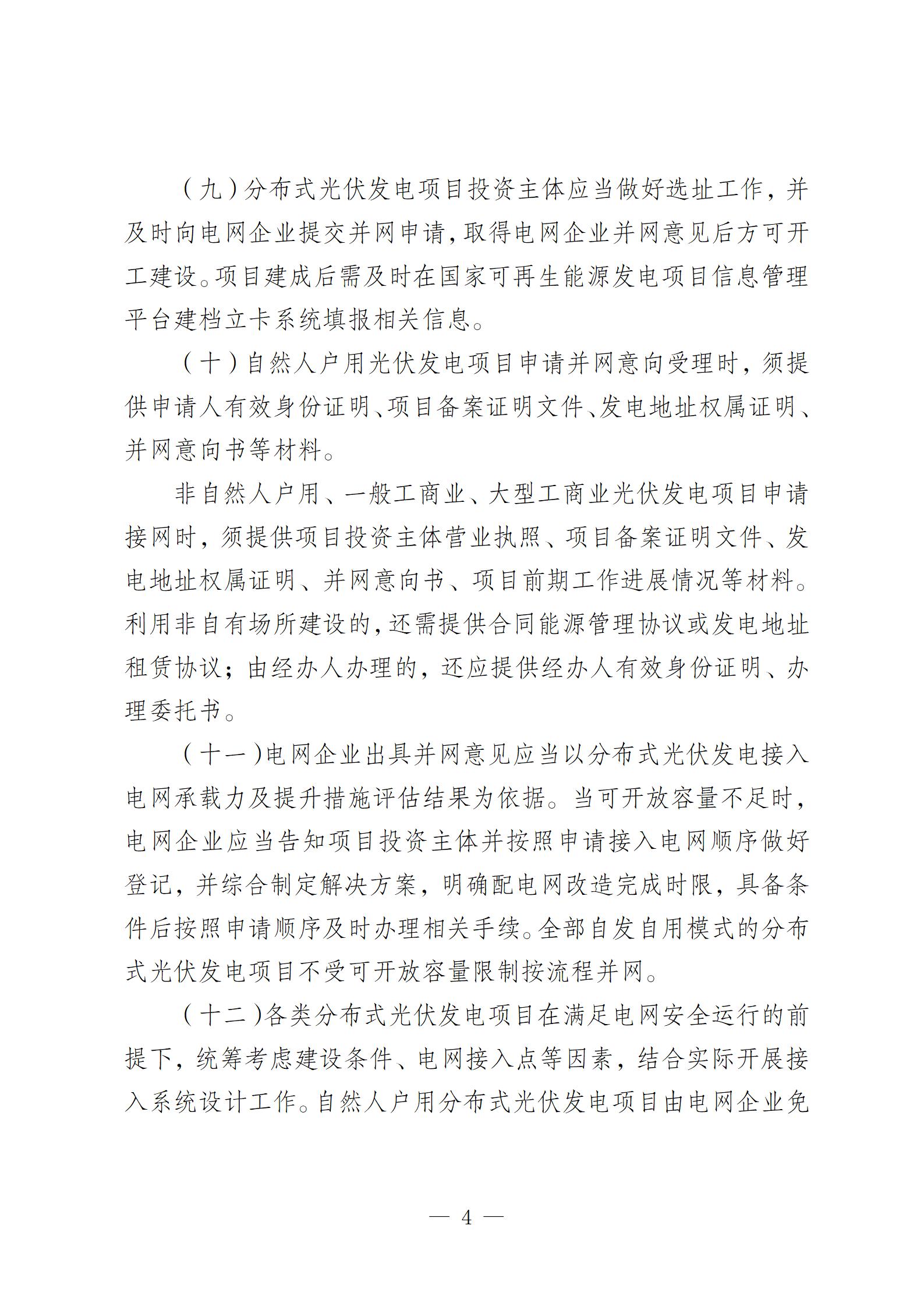 当可开放容量不足时,电网企业应当告知项目投资主体并按照申请接入电网顺序做好登记,并综合制定解决方案,明确配电网改造完成时限,具备条件后按照申请顺序及时办理相关手续。全部自发自用模式的分布式光伏发电项目不受可开放容量限制按流程并网。