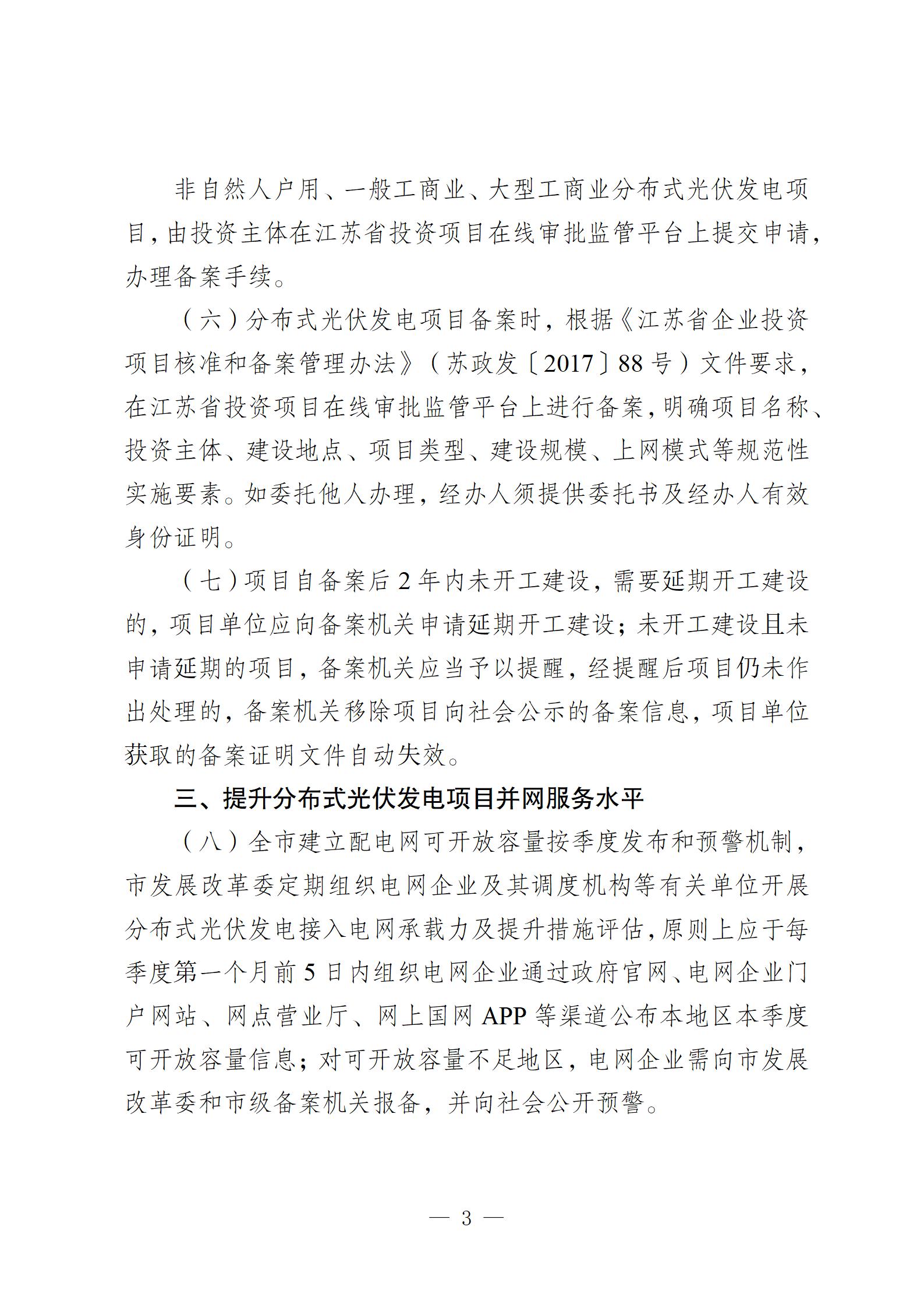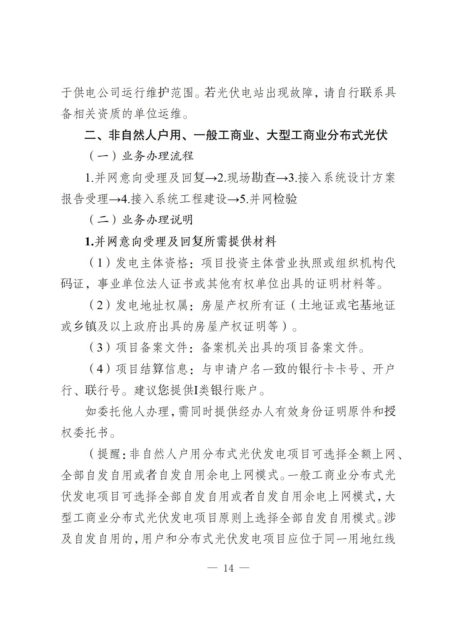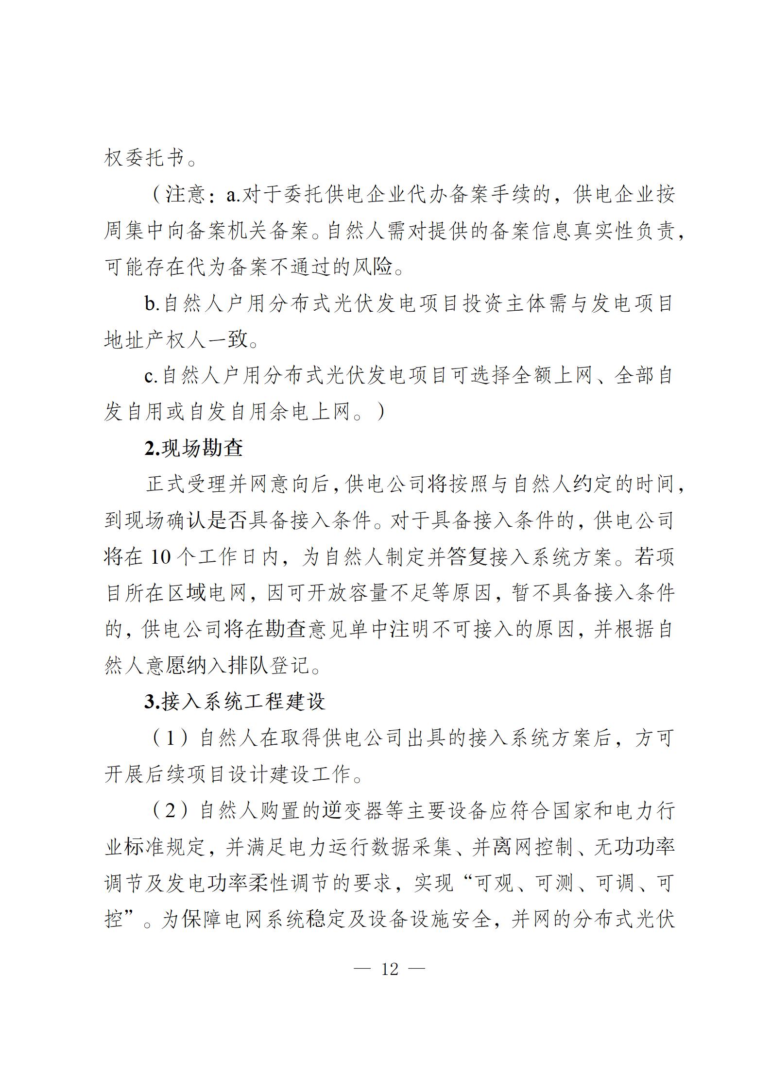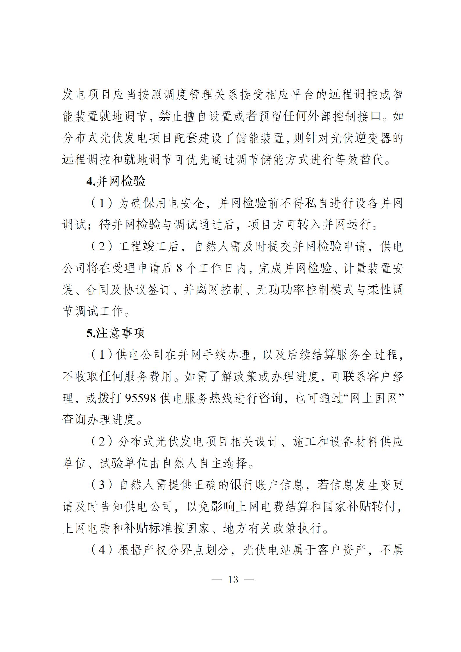 当可开放容量不足时,电网企业应当告知项目投资主体并按照申请接入电网顺序做好登记,并综合制定解决方案,明确配电网改造完成时限,具备条件后按照申请顺序及时办理相关手续。全部自发自用模式的分布式光伏发电项目不受可开放容量限制按流程并网。