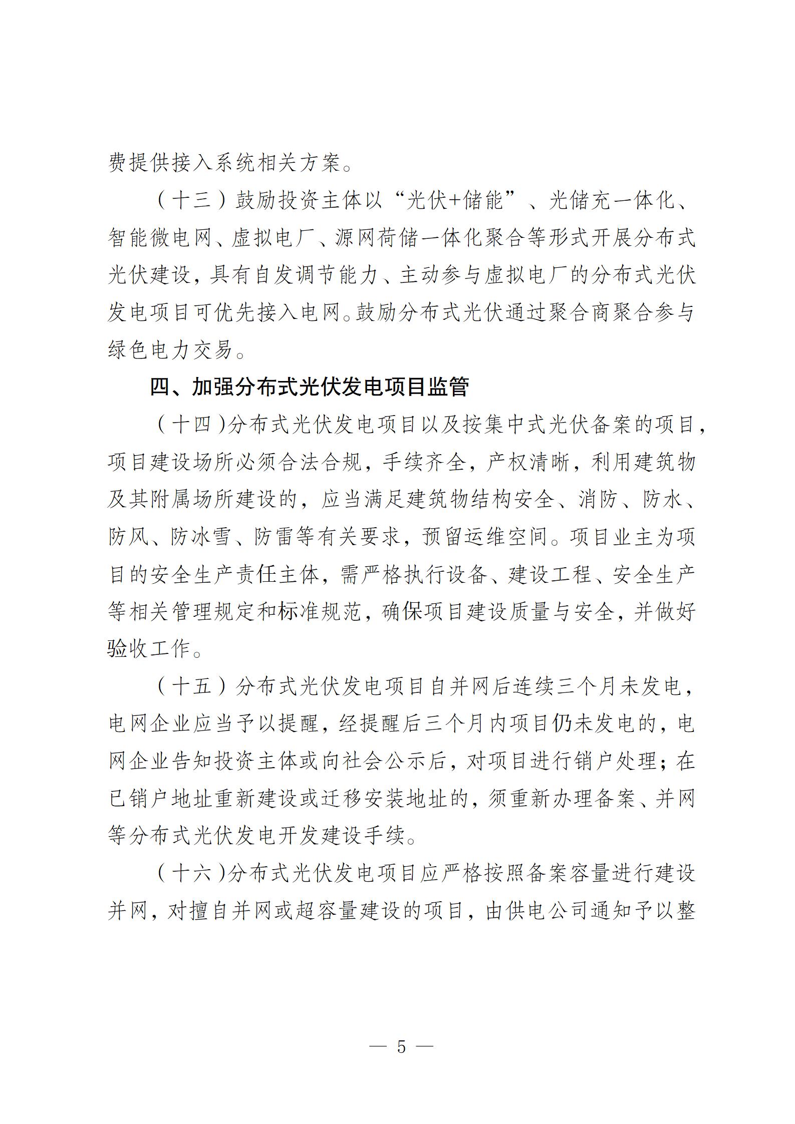 鼓励投资主体以“光伏+储能”、光储充一体化、智能微电网、虚拟电厂、源网荷储一体化聚合等形式开展分布式光伏建设,具有自发调节能力、主动参与虚拟电厂的分布式光伏发电项目可优先接入电网。鼓励分布式光伏通过聚合商聚合参与绿色电力交易。