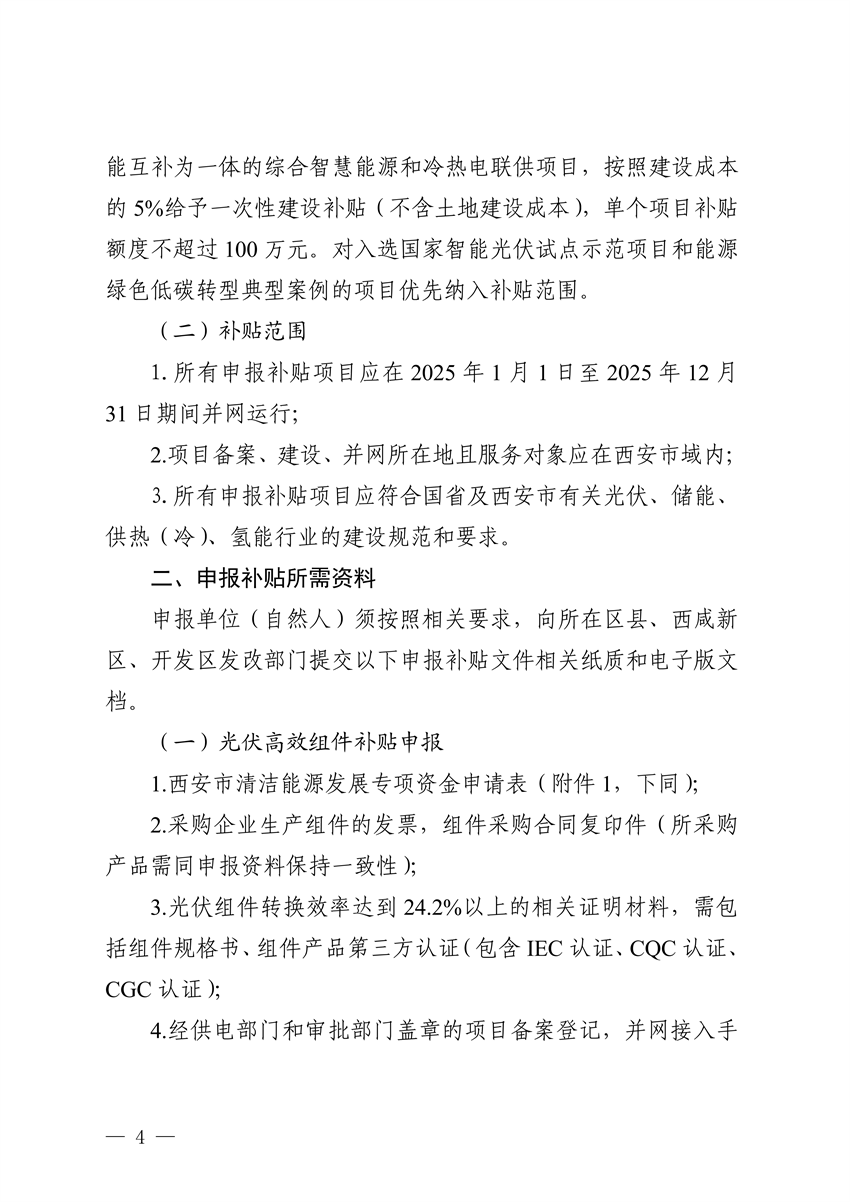 西安市发展和改革委员会 西安市财政局《西安市促进光伏产业发展若干措施(高效组件、光储、综合用能优化方向)财政补贴实施细则》已印发,请相关能源企业认真结合要求,积极筹备相应资料,与发展改革局对接,待后期市发改委申报通知下达后,我局将依规组织申报。