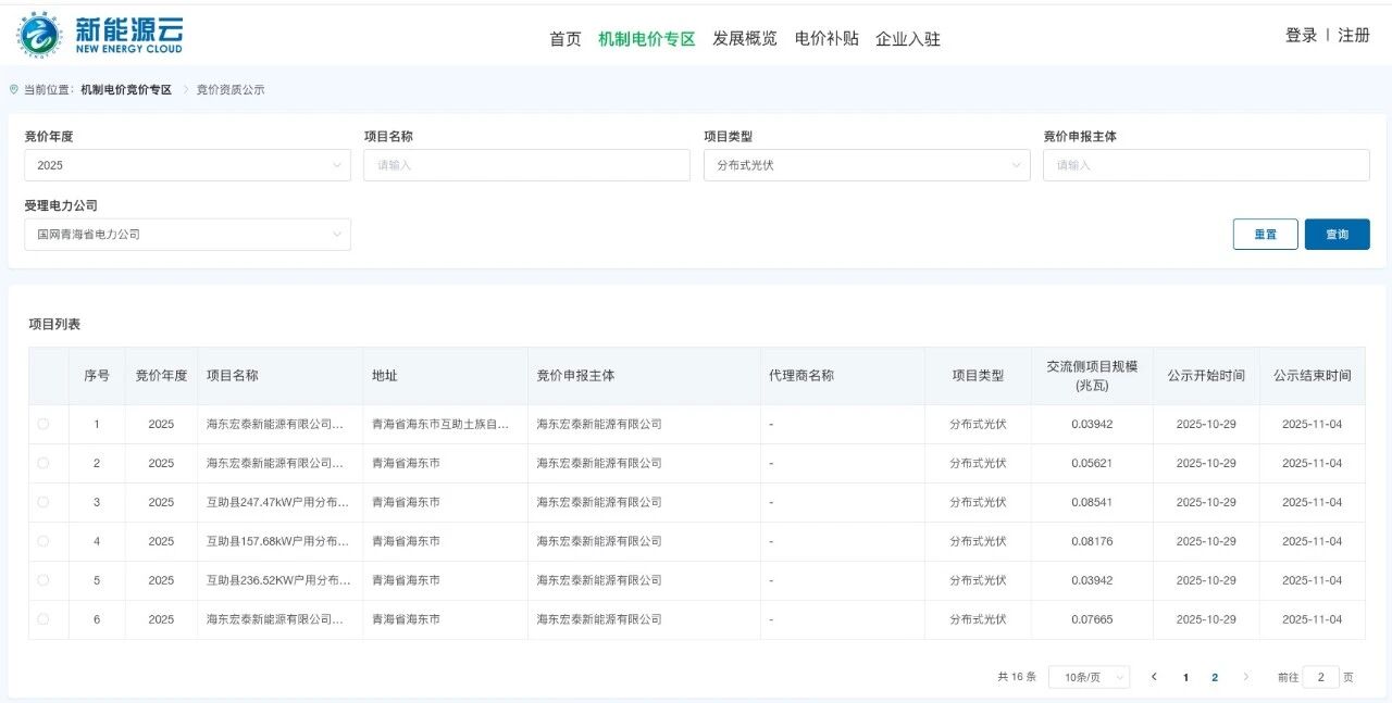 国网新能源云平台10月29日发布了参与青海省参与新能源竞价的资质审核结果。