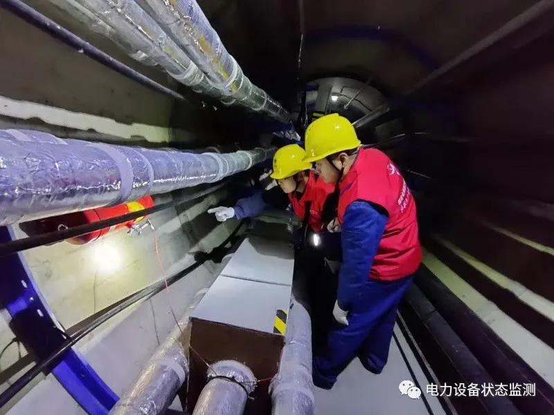 3月8日,在浙江绍兴供电公司220千伏电缆通道内,该公司输电运检高压电缆班员工陈啸和同事正在对安装在220千伏兰渡2461线、兰东2462线的“电缆智慧耳”进行调试。