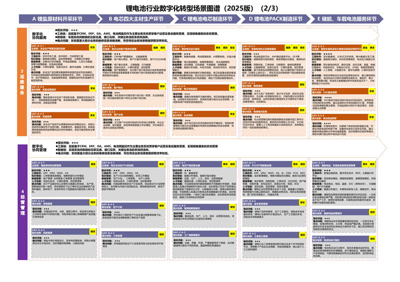 锂电池行业场景图谱由工业和信息化部指导中国信息通信研究院,会同合肥国轩高科动力能源有限公司、安徽海行云物联科技有限公司等各方共同研究编制,为锂电池行业数字化转型提供参考。
