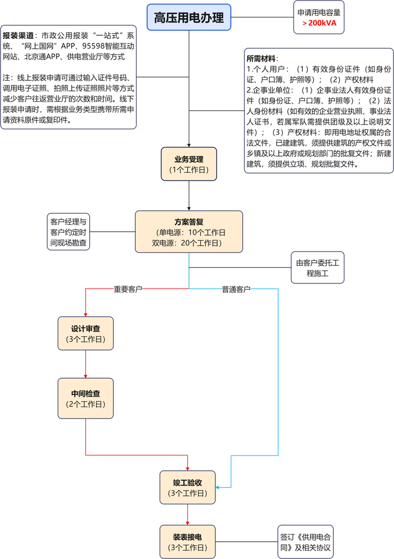 1.业务受理:用户可通过多种渠道提出申请,国网北京市电力公司核查资料合格后受理。