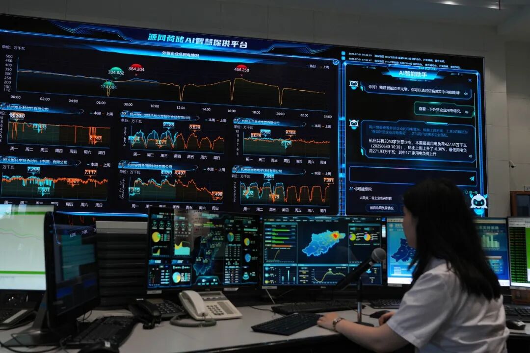 屏幕上,复杂的电网数据流和负荷曲线实时跳动。工作人员介绍,这就是国网杭州供电公司已经上岗的“AI调度员”的工作界面。 它能认识、分析甚至指导电网,3秒内完成全市电力负荷分析,让过去迎峰度夏时电话声此起彼伏的调度大厅,变得安静有序。