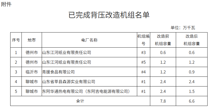 关于德州、临沂、聊城市2024年已完成背压改造机组名单的公示