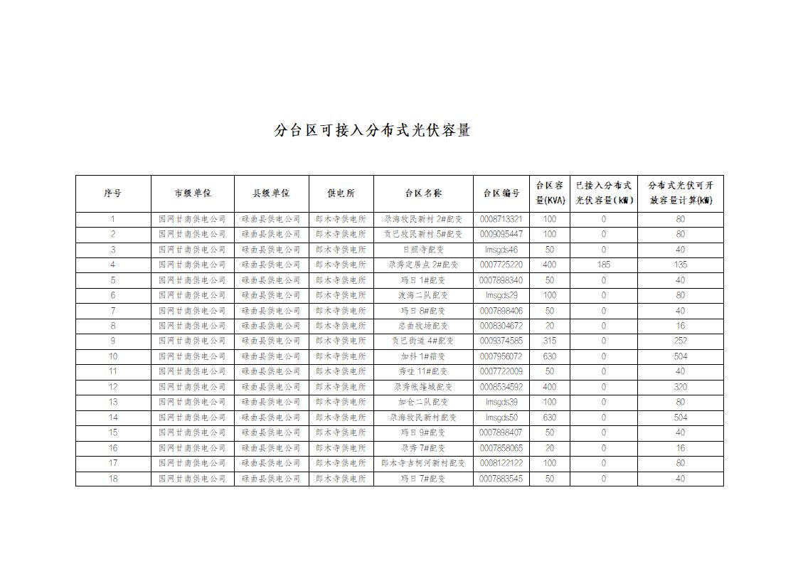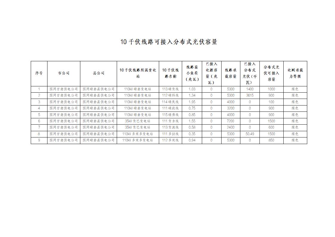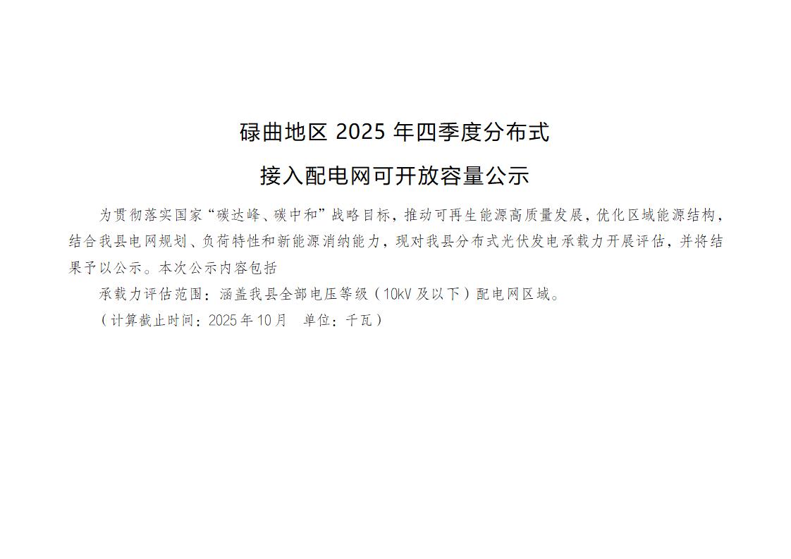碌曲地区2025年四季度分布式接入配电网可开放容量公示