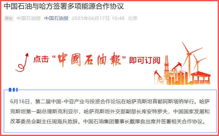 6月,第二届中国-中亚产业与投资合作论坛期间,中国石油率先与哈方签署四项关键协议,内容涵盖奇姆肯特炼厂扩建、阿克纠宾尿素项目,以及阿克纠宾州“Northern-1”区块的地下勘探计划。