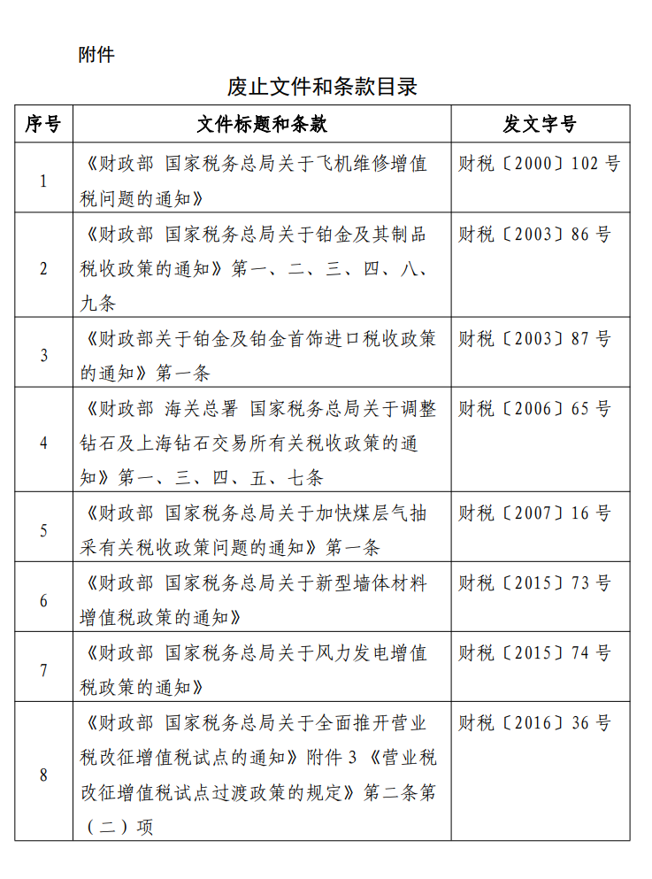 三、现行规定与本公告不一致的,以本公告为准。《财政部 国家税务总局关于风力发电增值税政策的通知》(财税〔2015〕74号)等文件规定自2025年11月1日起废止,具体见附件。