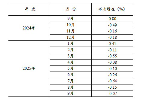 根据季节调整模型自动修正结果,对2024年9月份以来的固定资产投资(不含农户)环比增速进行修订。修订结果及2025年9月份环比数据如下: