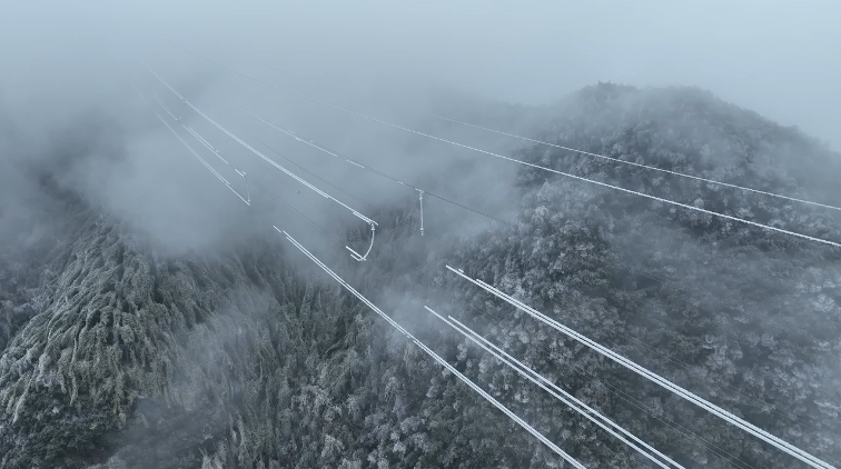 通过直流融冰技术,精准输出电流,借助电流热效应为线路逐段升温。在短短几十分钟的“理疗”中,导线温度稳步升至38℃,覆冰被高效融化,让线路迅速恢复“轻盈状态”。
