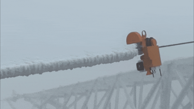 它的绝活是“振动除冰”:通过AI预测结冰趋势,然后发出特定频率的机械波,让线路像“抖被子”一样,高效抖落雨雪,从源头避免形成厚冰,而且全程不伤线路、无需停电。