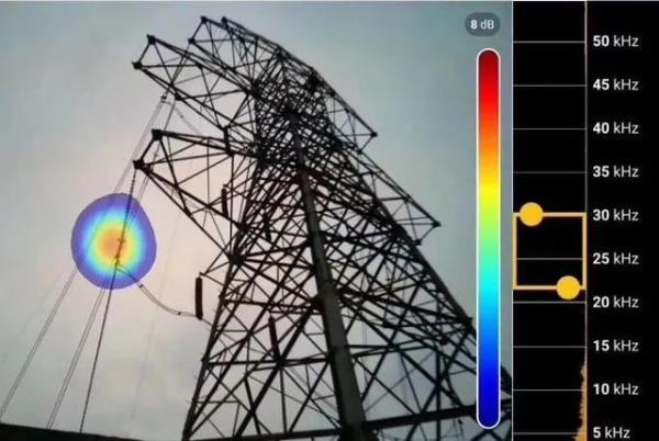 高压电气设备发生局部放电时,会产生超声波能量,这些能量通过空气传递至声学成像仪的声压传感器阵列,在显示屏上以可见光图像为底、超声波能量按照调色板颜色显示的画面,从图像上即可快速对局部放电部位进行排查,并可将局部放电的问题点以JEPG照片或MP4视频格式进行保存。