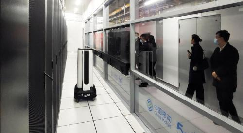 早在2020年,中国移动就与国家健康医疗大数据北方中心开展了5G深入合作,北方中心主数据中心总体设计容量20000机柜,在移动5G技术的推动下,共同组成了国内领先的医疗大数据技术平台,覆盖大数据汇聚、存储、治理、加工、开放等全生命周期等环节。在北方中心的机房内,早已有了超维科技智能巡检机器人工作的身影。