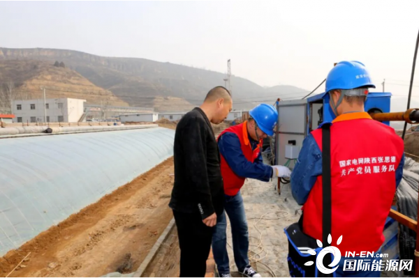 ▲国网陕西张思德(延安枣园)共产党员服务队队员上门服务农业大棚用电