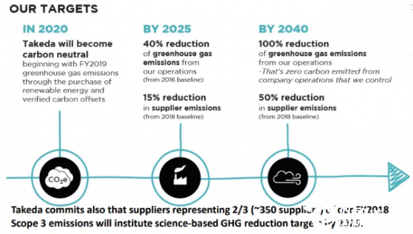 武田药品工业株式会社2019财年在价值链上实现了碳中和。为达成此重要成就,武田采取了多种行动:在公司内部持续推行能源节约措施;倡导绿色能源采购;投资可再生能源认证;积极参与高质量碳补偿项目并通过验证。
