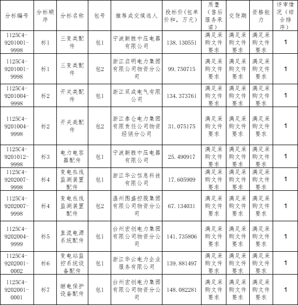 国网浙江电力2025年第一次电网零星物资框架协议竞争性谈判采购推荐的成交候选人名单公示(采购编号:ZBGW25-022)