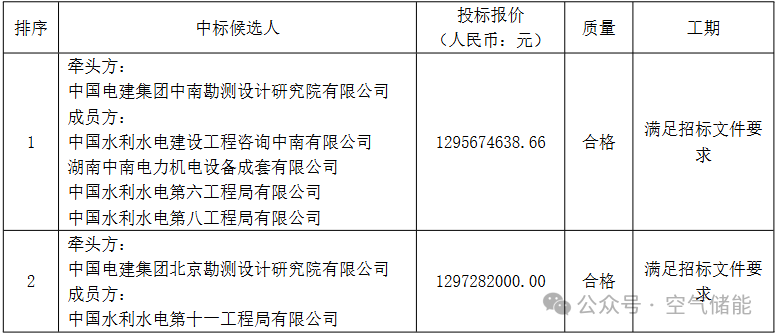 湖南岳阳龙泉山300MW先进压缩空气储能电站项目EPC总承包中标候选人公示