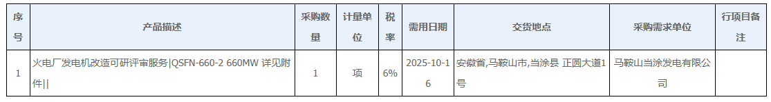 二、采购单名称:安徽公司当涂公司二期2×1000MW燃煤机组扩建工程项目初可研报告评审服务项目询比采购