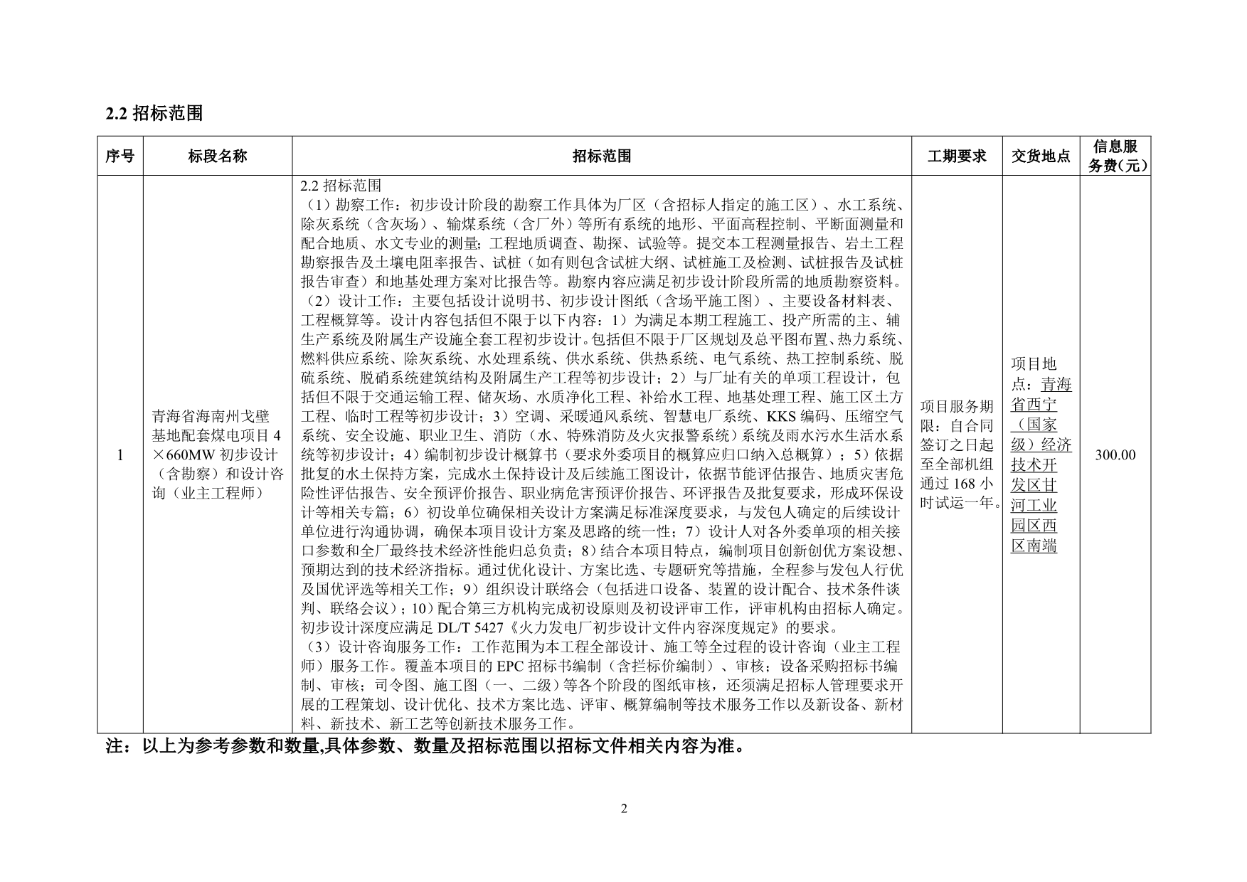 青海省海南州戈壁基地配套煤电项目 4×660MW初步设计(含勘察)和设计咨询(业主工程师)招标公告【二次】