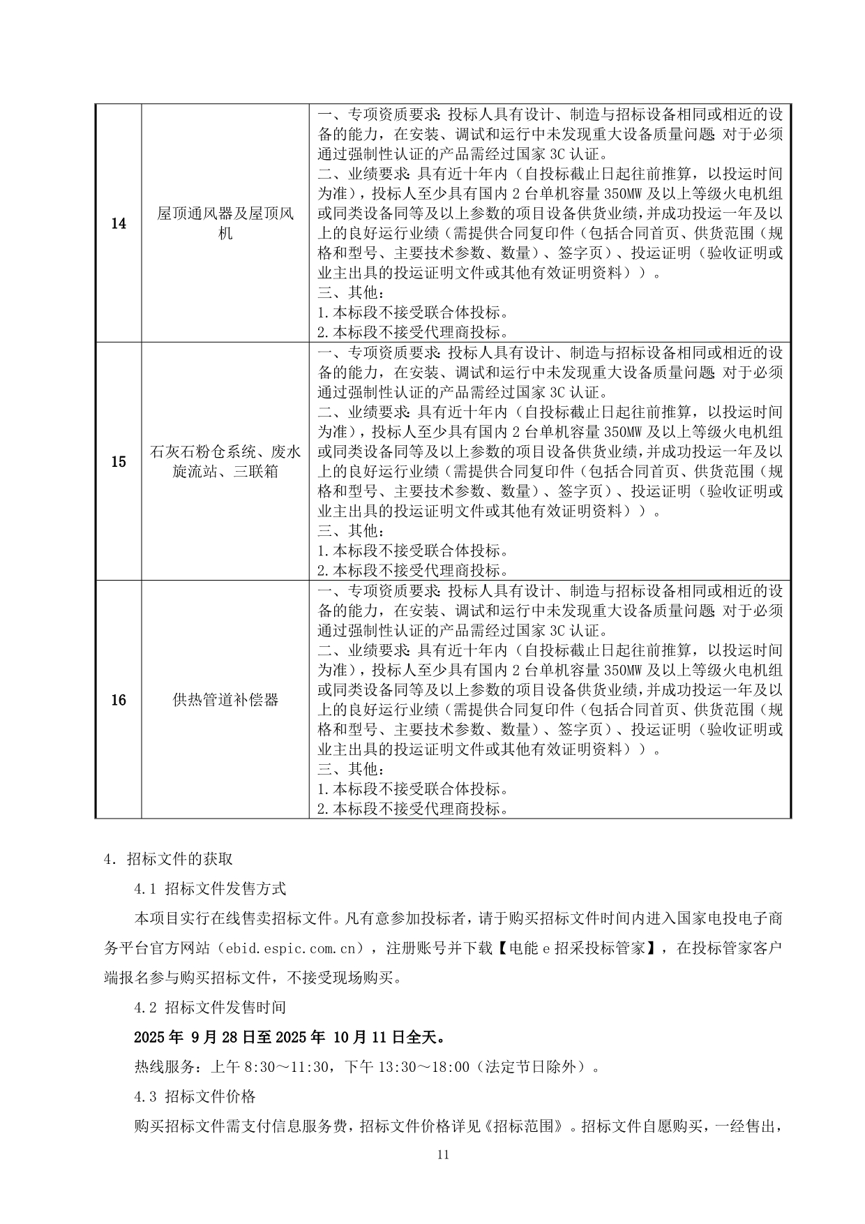 山东电力工程咨询院有限公司 2025 年第 342 批招标吉木萨尔 2×350MW 热电联产项目二辅批次第二批辅机设备招标公告