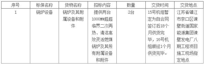 2.1 项目概况、招标范围及标段(包)划分:2.1.1项目概况:江苏公司谏壁电厂八期2×1000MW机组工程项目,拟建设2×1000MW超超临界二次再热、清洁高效灵活燃煤机组,同步建设烟气脱硫、脱硝装置等。