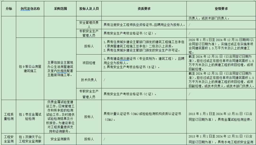 二、本次服务采购(九十二批次)将围绕电源项目展开招标,共分为三个标段,分别为水电施工、工程质量检测以及工程安全监测,服务于栗子湾、枣庄、双牌天子山以及柯城抽水蓄能电站。