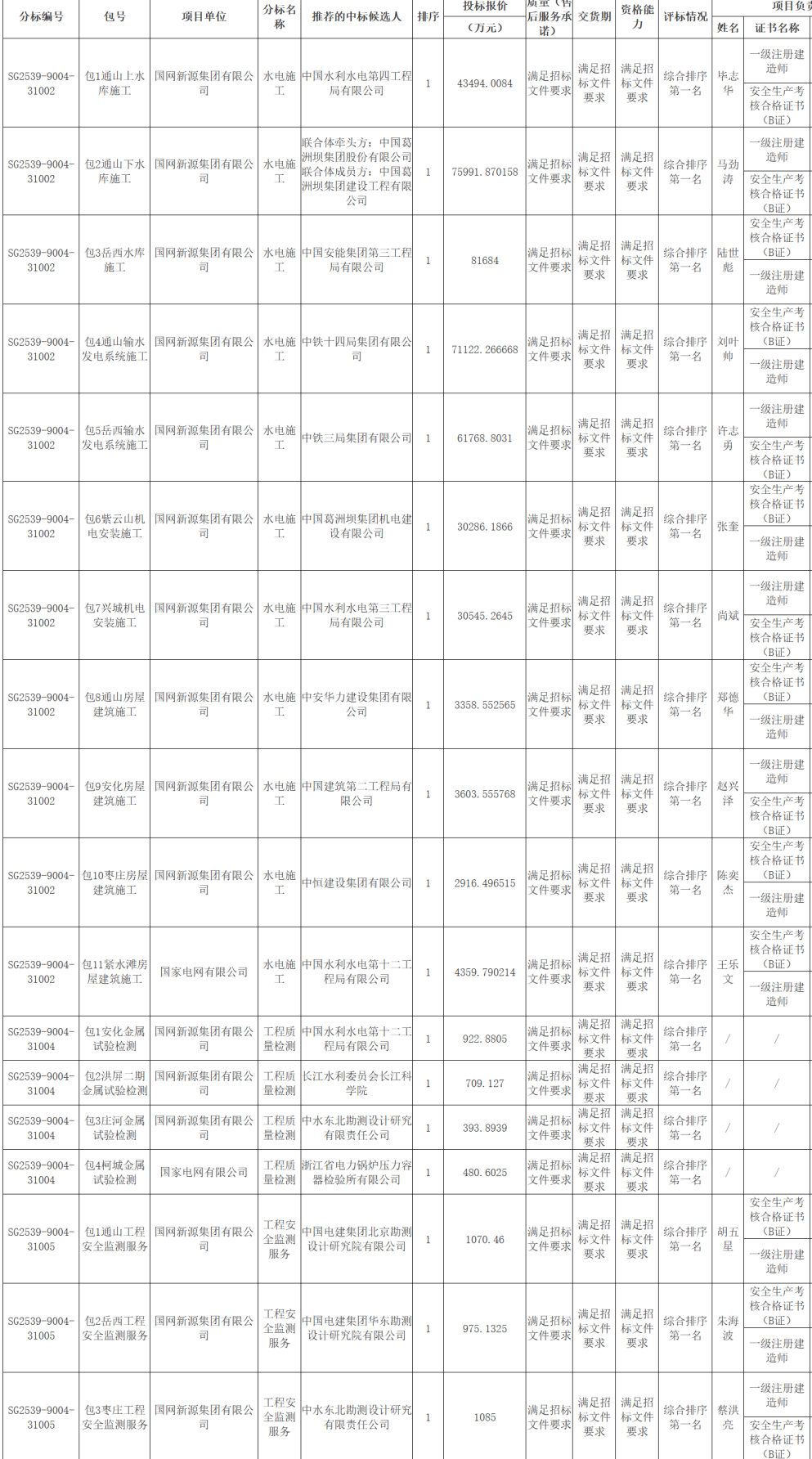 目前评标工作已顺利完成,现将中标单位公示如下。