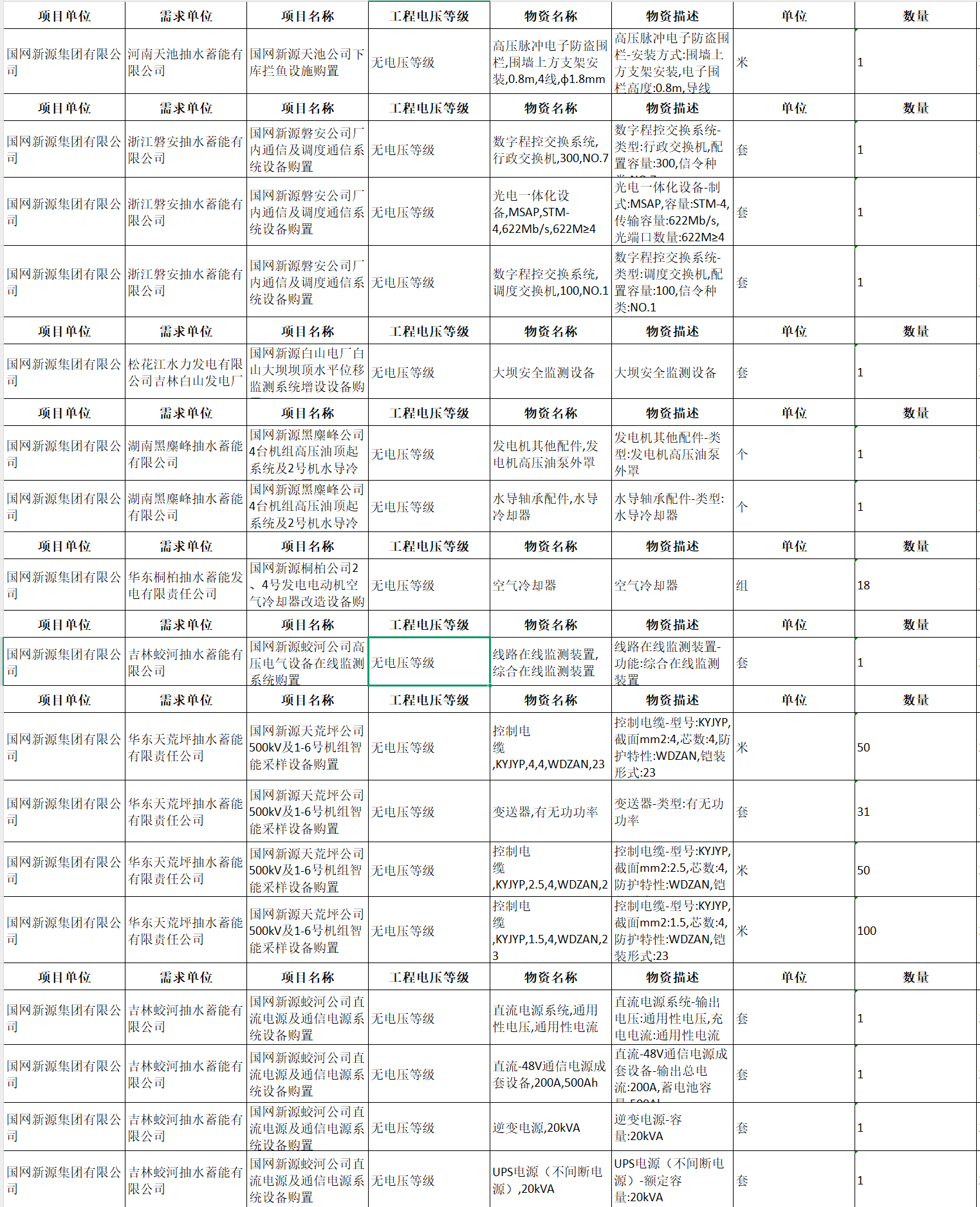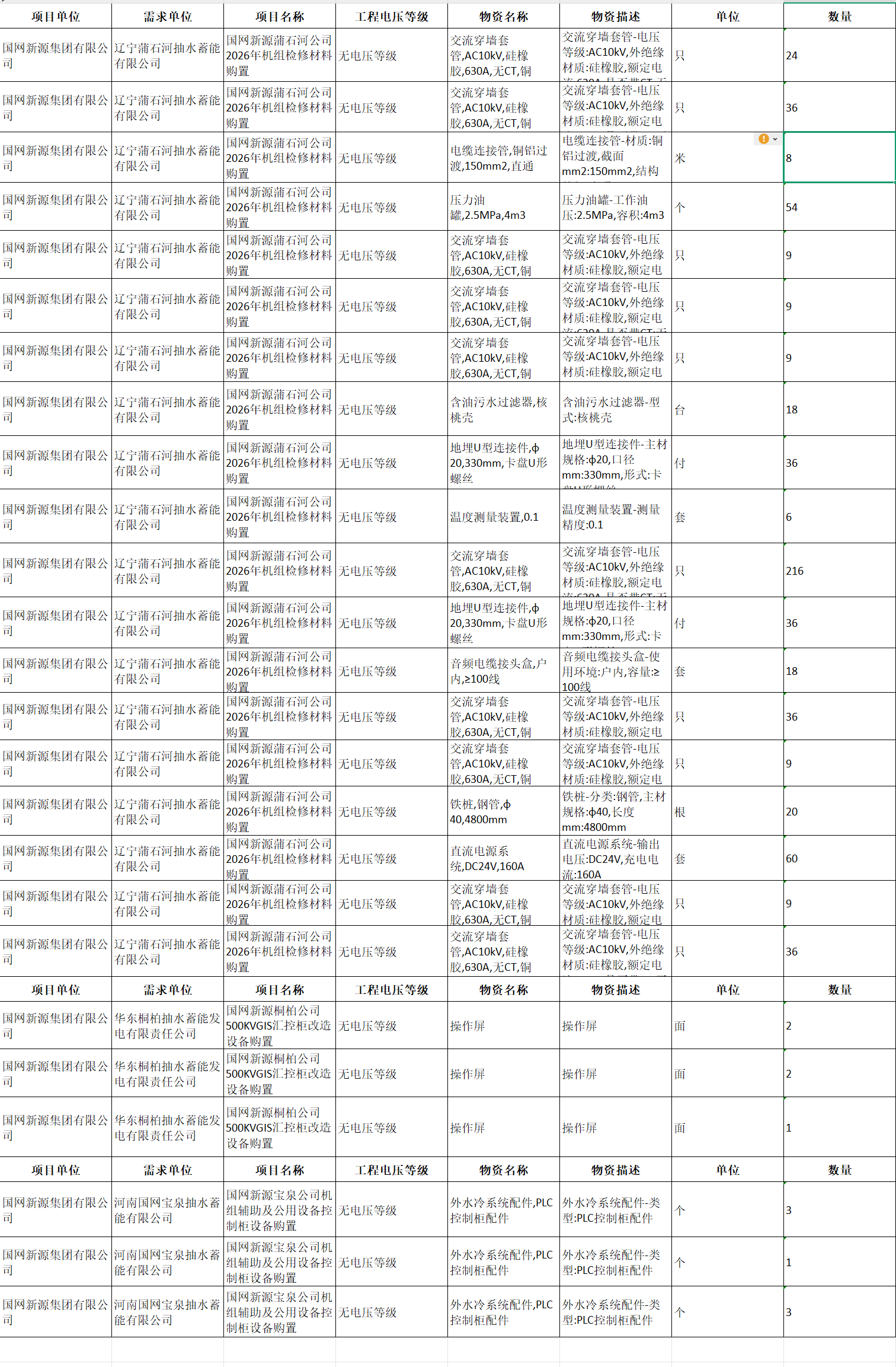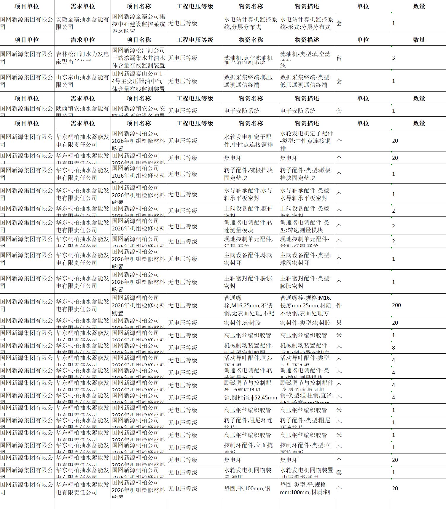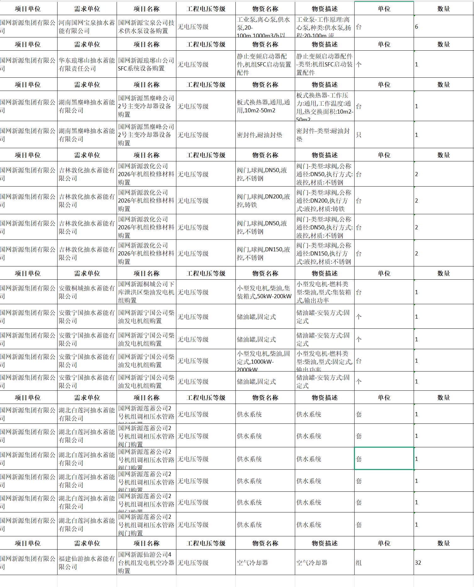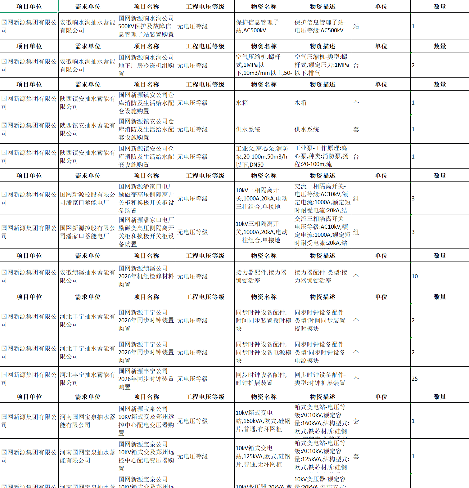 国网新源集团2025年第六批物资招标采购工作现已启动。本次招标涉及多个抽水蓄能电站项目,涵盖了从变压器、开关柜、电缆、自动化系统到辅助设备等多种物资类别。
