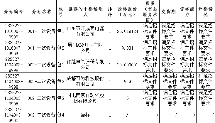 国网青海电力2025年第三次(282527)物资单一来源采购推荐的中标候选人公示及否决原因公示(招标编号:282527)