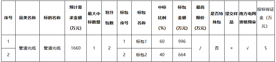 12月2日,广东电网公司2025年管道光缆框架招标,本次招标含管道光缆共1个物资品类。