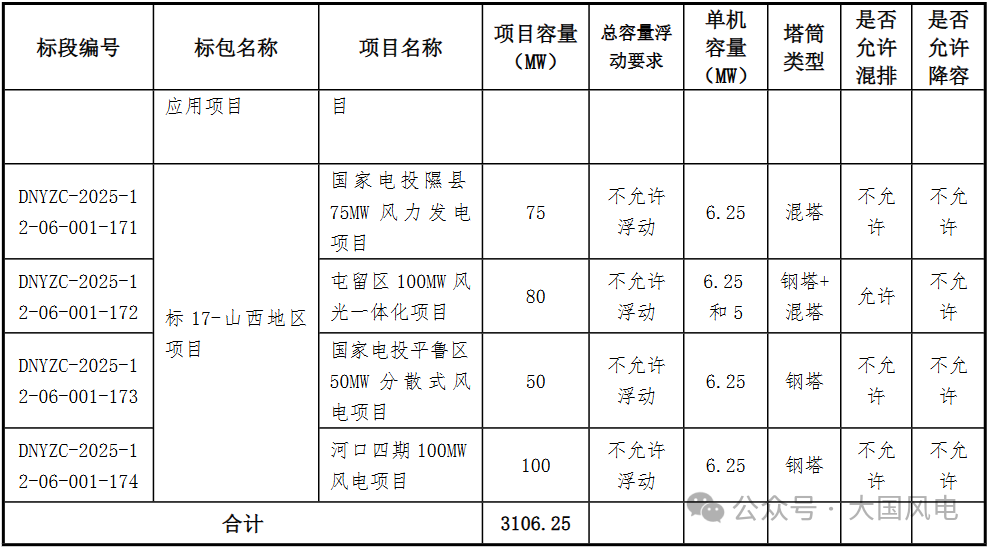 建设规模:第四批风力发电机组规模化,包括采购容量3106.25MW。