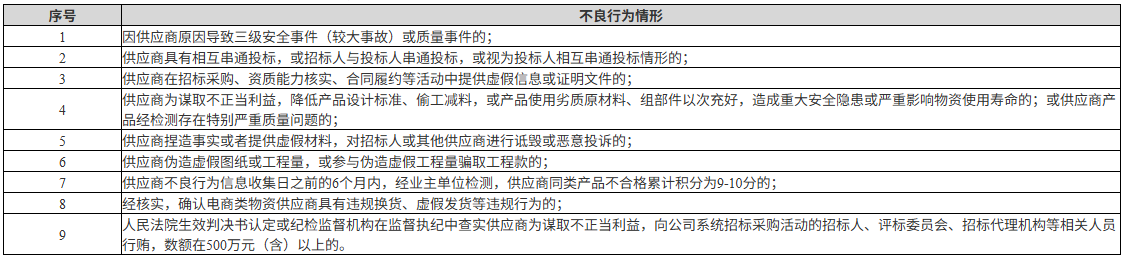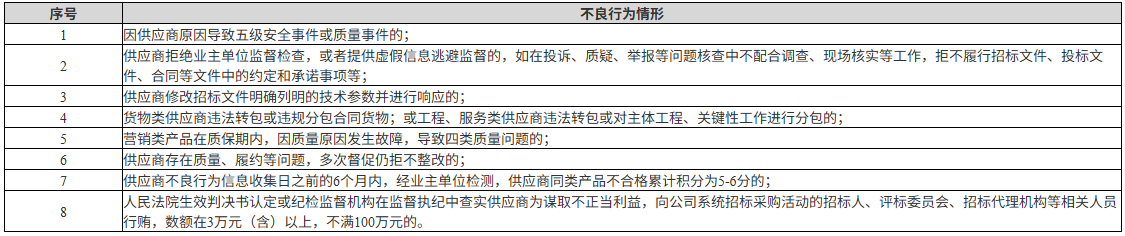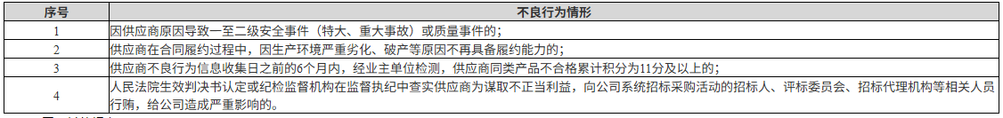 属于总部实施招标采购范围的供应商不良行为,由总部做出处理决定,在公司系统内执行。