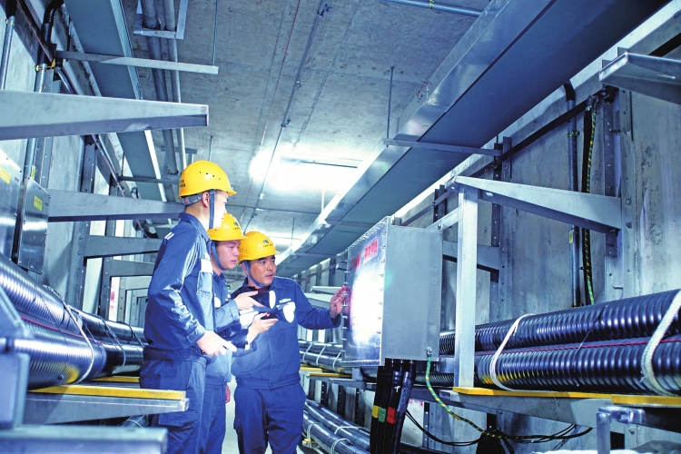 近日,深圳供电局电缆运维人员在前海电缆隧道对电缆交叉互联接地箱开展日常巡检。 具章平 摄