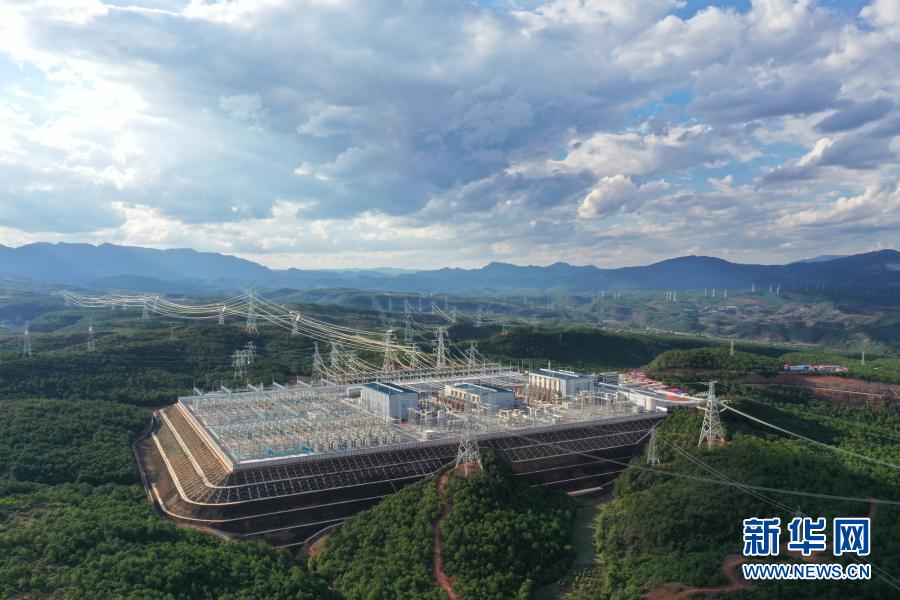 这是6月9日拍摄的乌东德电站送电广东广西特高压多端柔性直流示范工程云南送端昆北换流站(无人机照片)。 新华社发(李品 摄)