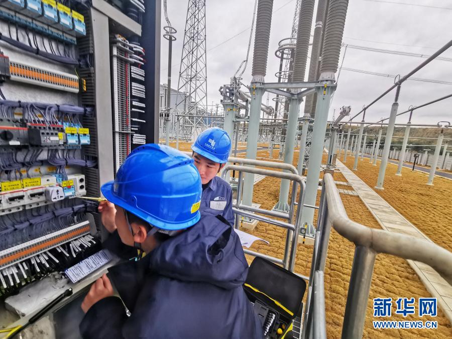 乌东德电站送电广东广西特高压多端柔性直流示范工程广西受端柳北换流站工作人员在进行调试(12月15日摄)。 新华社发(李志杰 摄)