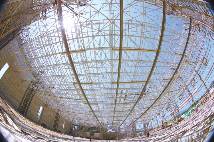 在龙门换流站的阀厅网架施工过程中,广东电网能源发展公司首次对阀厅网架通过计算机仿真模拟,将重达700多吨的阀厅网架实现整体同步提升。 杨惠平 摄