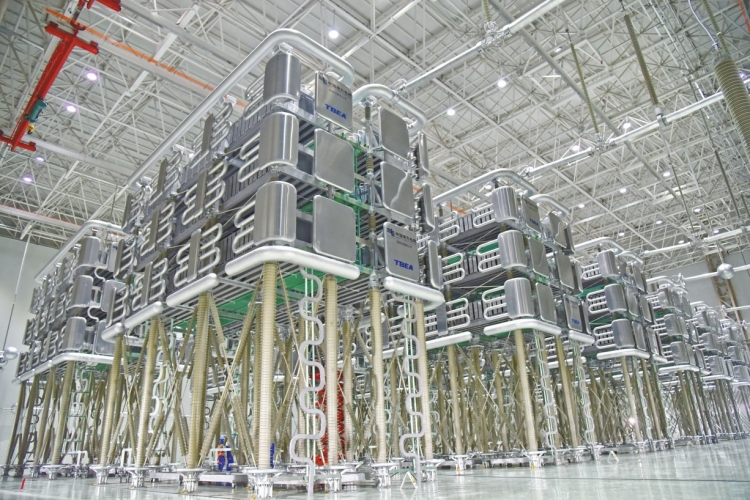 柳州换流站极1低端阀厅建设现场。 刘志东 摄