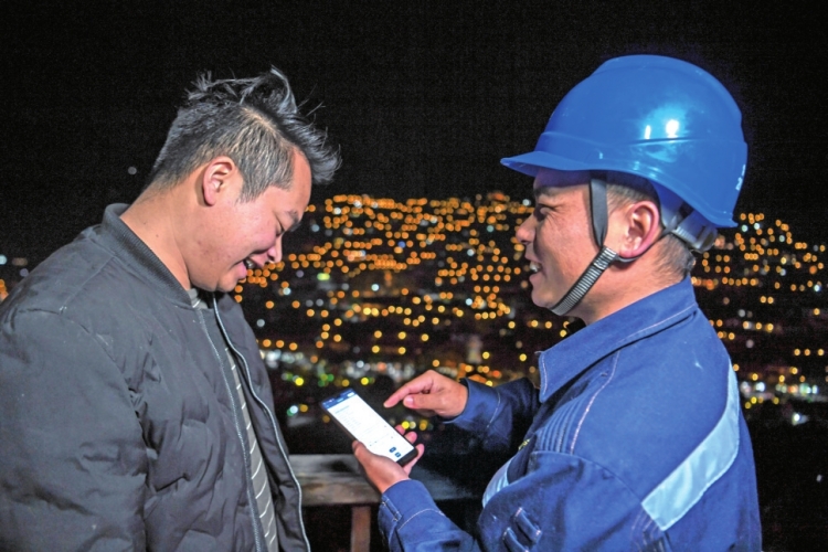 11月30日,贵州电网公司“工作台+现场工具”工作专班副组长、西江供电所所长任召廷使用“现场工具”手机应用完善客户信息。 蔡兴文 林世康 摄
