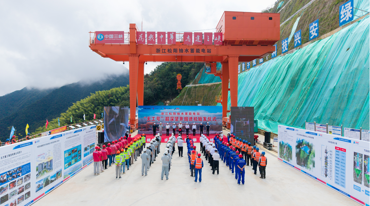 2025年9月19日,浙江松阳抽水蓄能电站“天工号”全断面扩孔式超深竖井掘进机破岩始发。