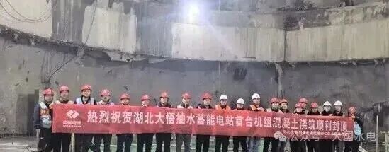 12月20日,湖北大悟抽水蓄能电站传来捷报,首台机组混凝土浇筑工程完成封顶。