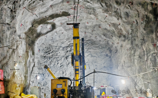 进厂交通洞全长1368.890米,城门洞型,是厂房Ⅲ至Ⅴ层的施工通道,其顺利贯通标志着项目取得战略性突破,为后续厂房开挖、机电安装、设备运输等核心任务的全面铺开奠定坚实基础。