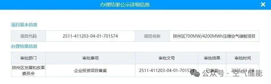 项目概况:项目位于三门峡市陕州区,由三门峡市发改委备案,总投资约40亿元,规划建设700MW先进压缩空气储能系统,采用“地下盐穴+人工硐室”混合储气模式。