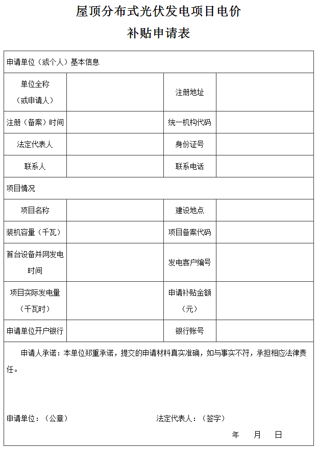 2.屋顶分布式光伏发电项目电价补贴申请表