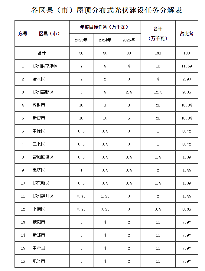 1.各区县(市)屋顶分布式光伏建设任务分解表
