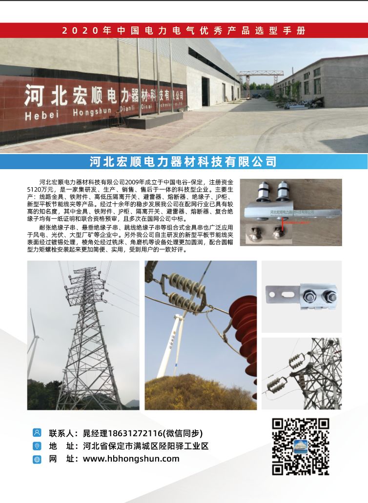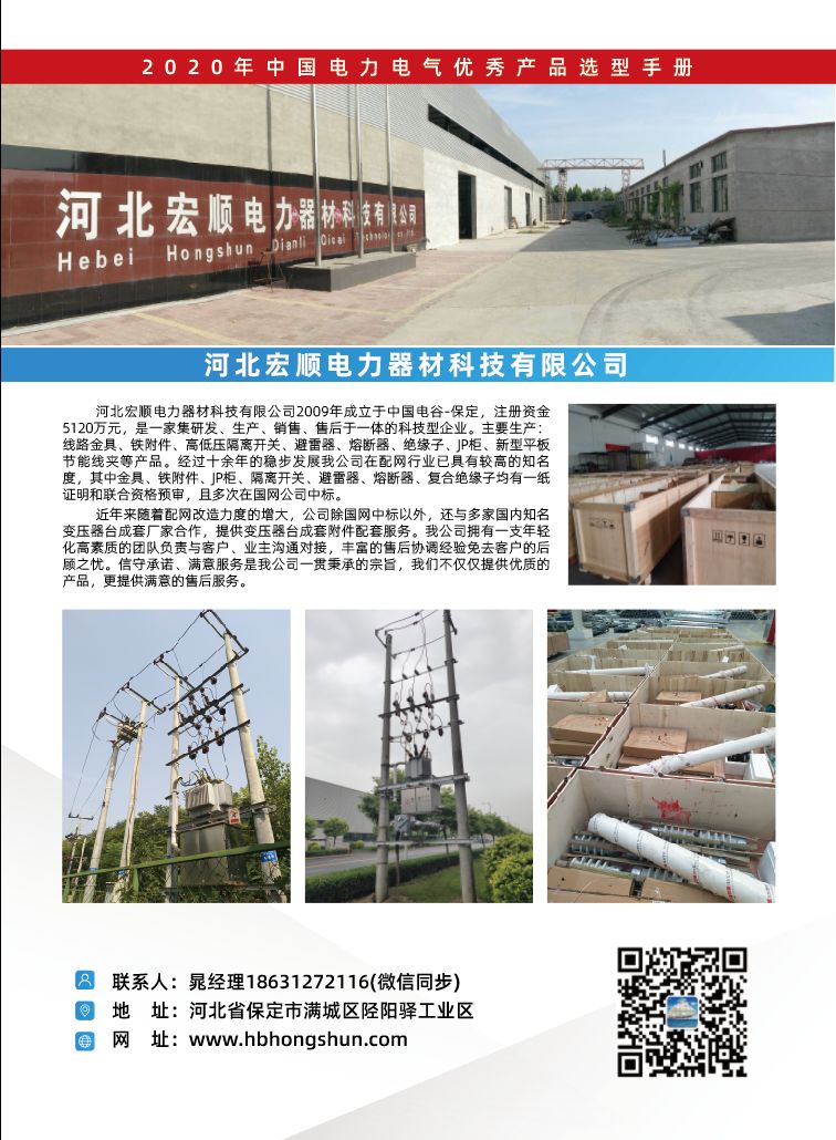 【恭喜】河北宏顺电力器材科技有限公司入编2020年中国电力电气优秀产品选型手册!