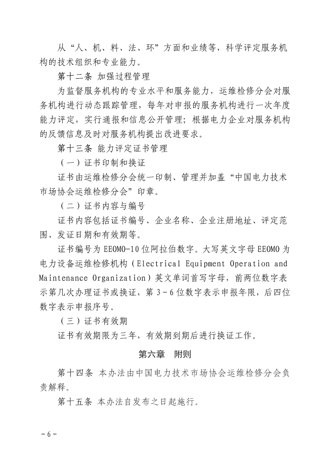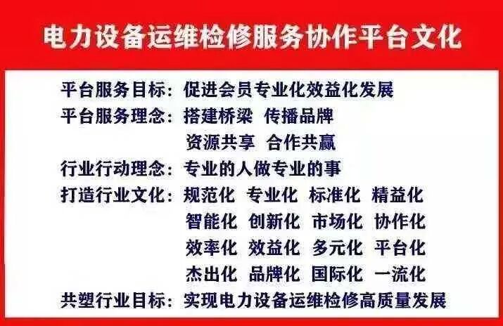 现开展电力设备运维检修服务机构能力评定服务工作。运维检修分会秘书处梳理了近500余项电力运维检修标准,组织了权威的专家团队,建设了电力运维检修知识库、技术库和产品库;能力评定工作坚持求实、严谨、公开、公平和公正的原则,坚持突出服务机构的专业水准、服务价值和科技创新;做到权威、专业、价值和行业认可。能力评定助力运维检修企业业务发展、专业提高和能力提升;能力评定助力运维检修企业核心价值体现和品牌建设。运维检修分会将与会员单位共同携手,为我国电力设备运维检修高质量发展做出贡献。
