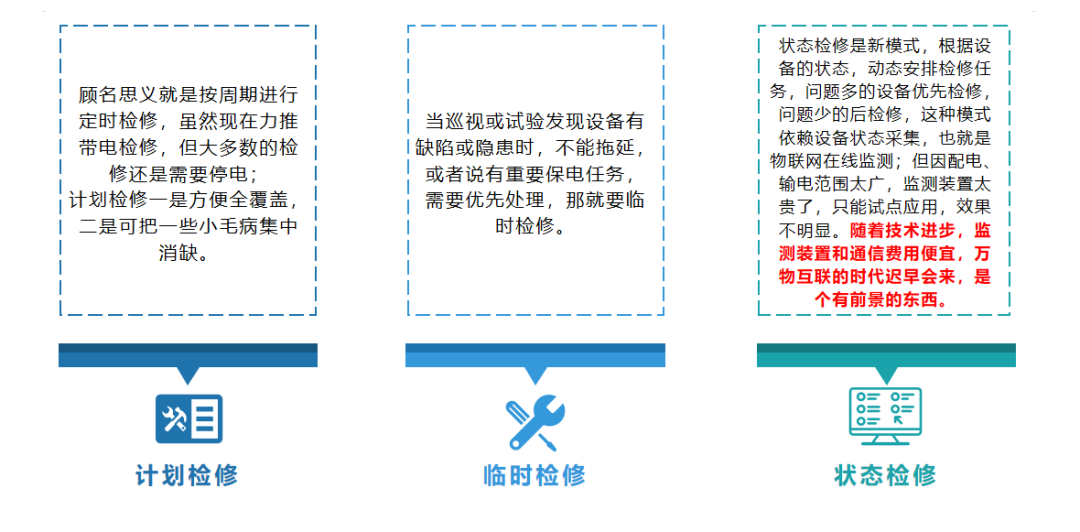 检修有计划检修、临时检修和状态检修(新)三类。